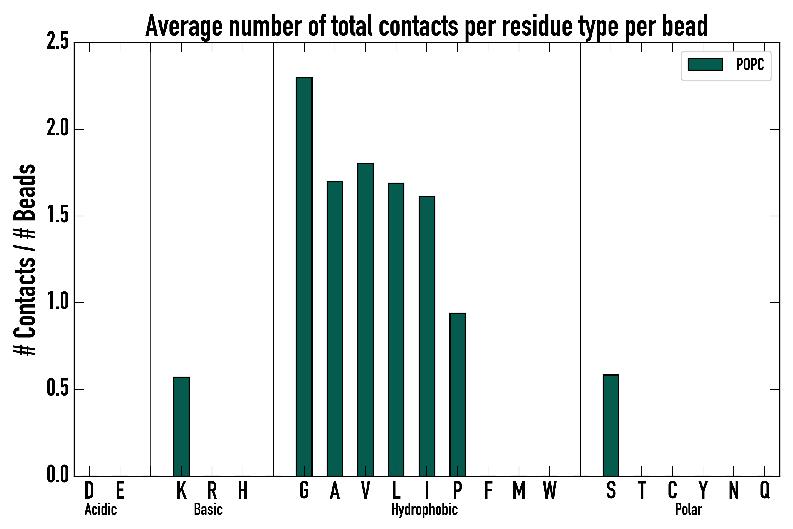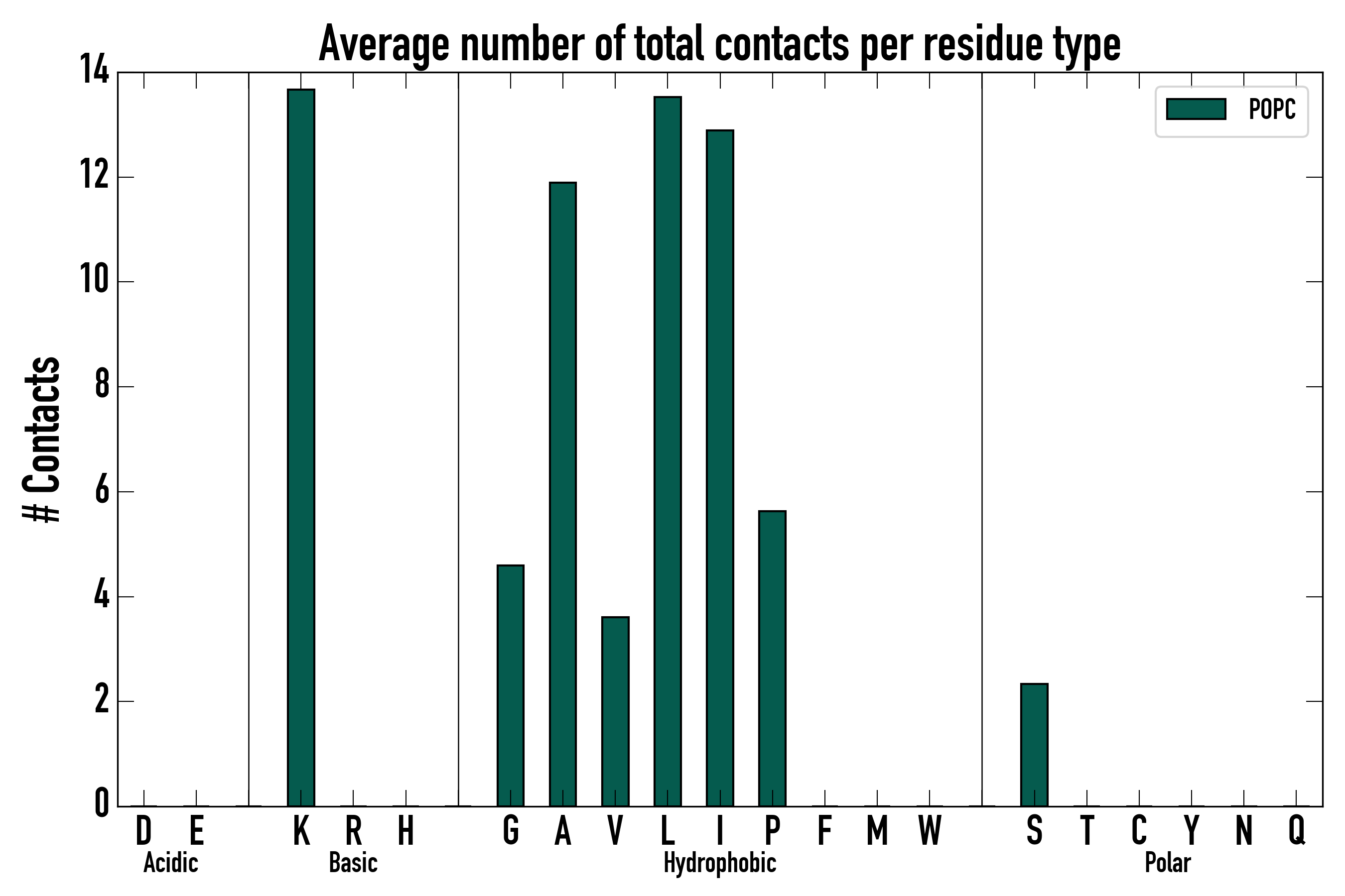 Number of total contacts per residue type: