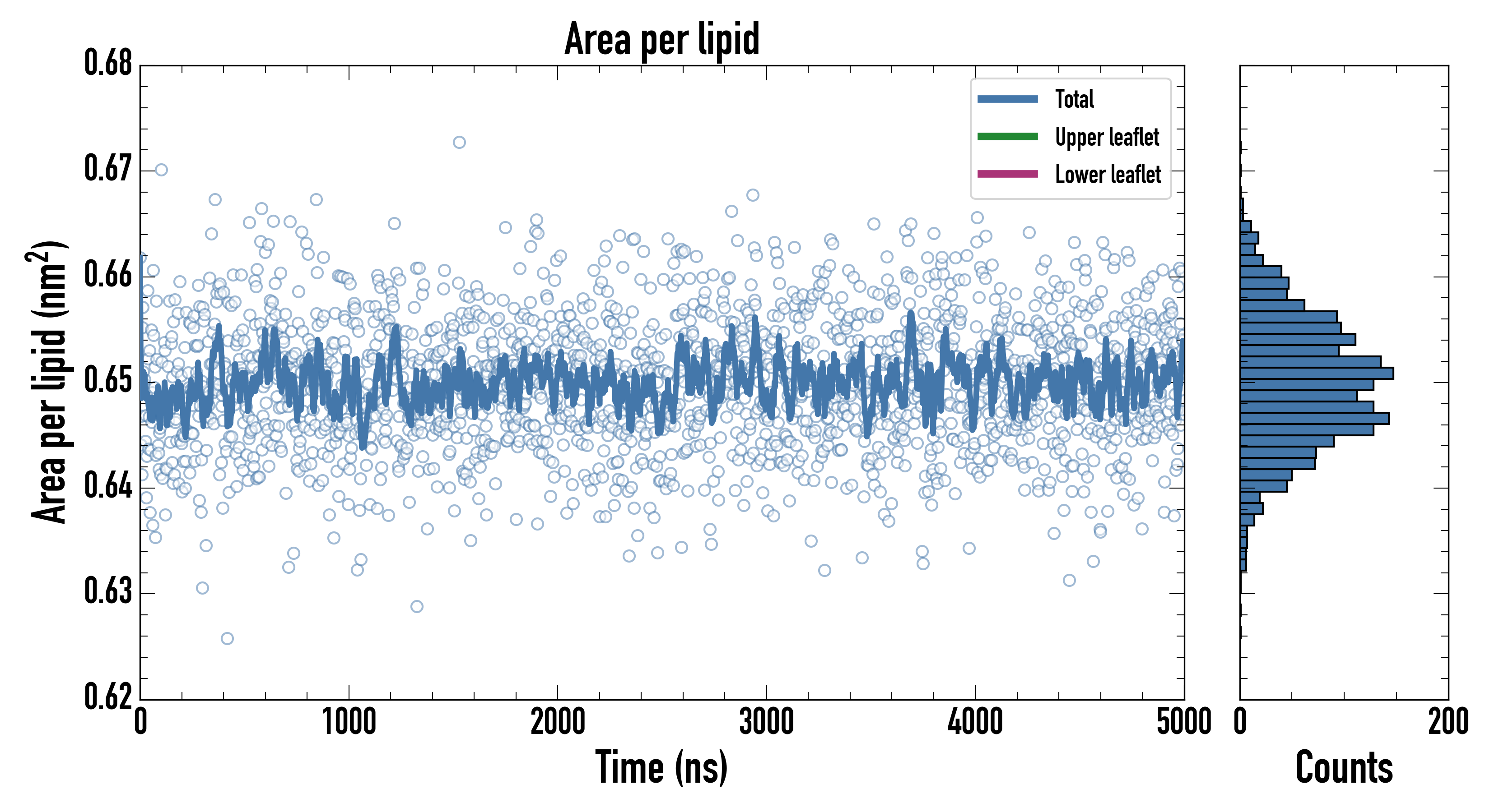 Upper leaflet (nm2): 0.650202000 ± 0.000946741