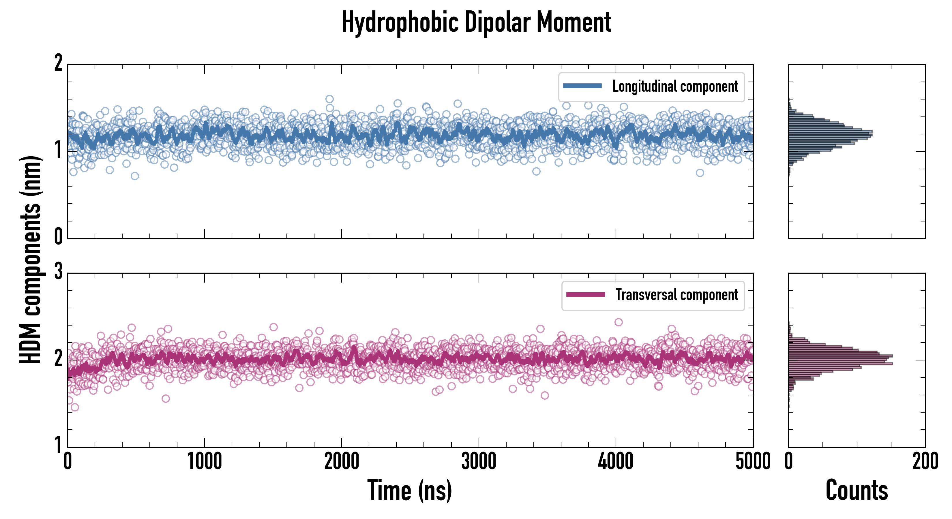 Longitudinal (e nm): 5.87 Transversal (e nm): 1.15 Hydrophobic Dipolar Moment (nm): 2.72