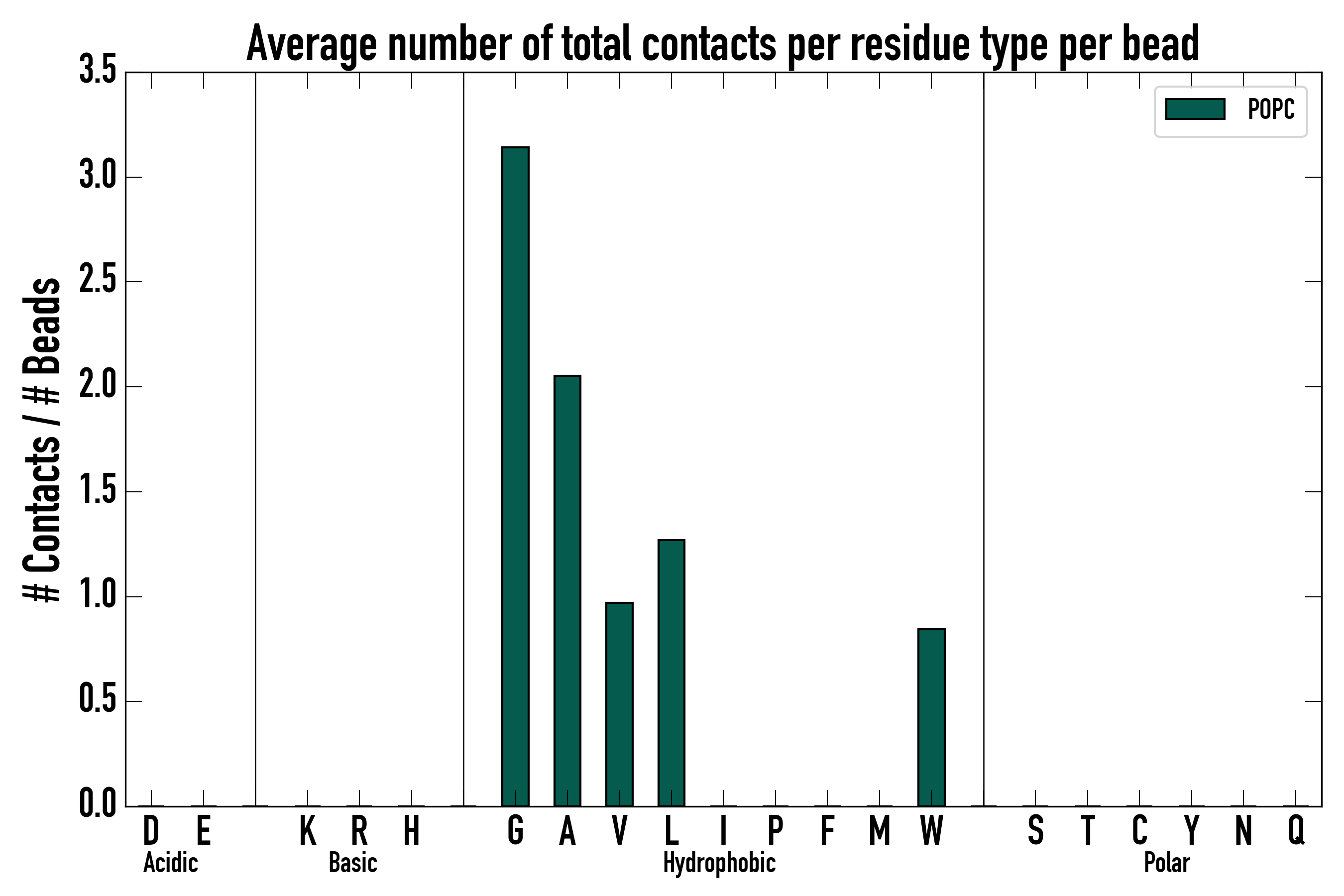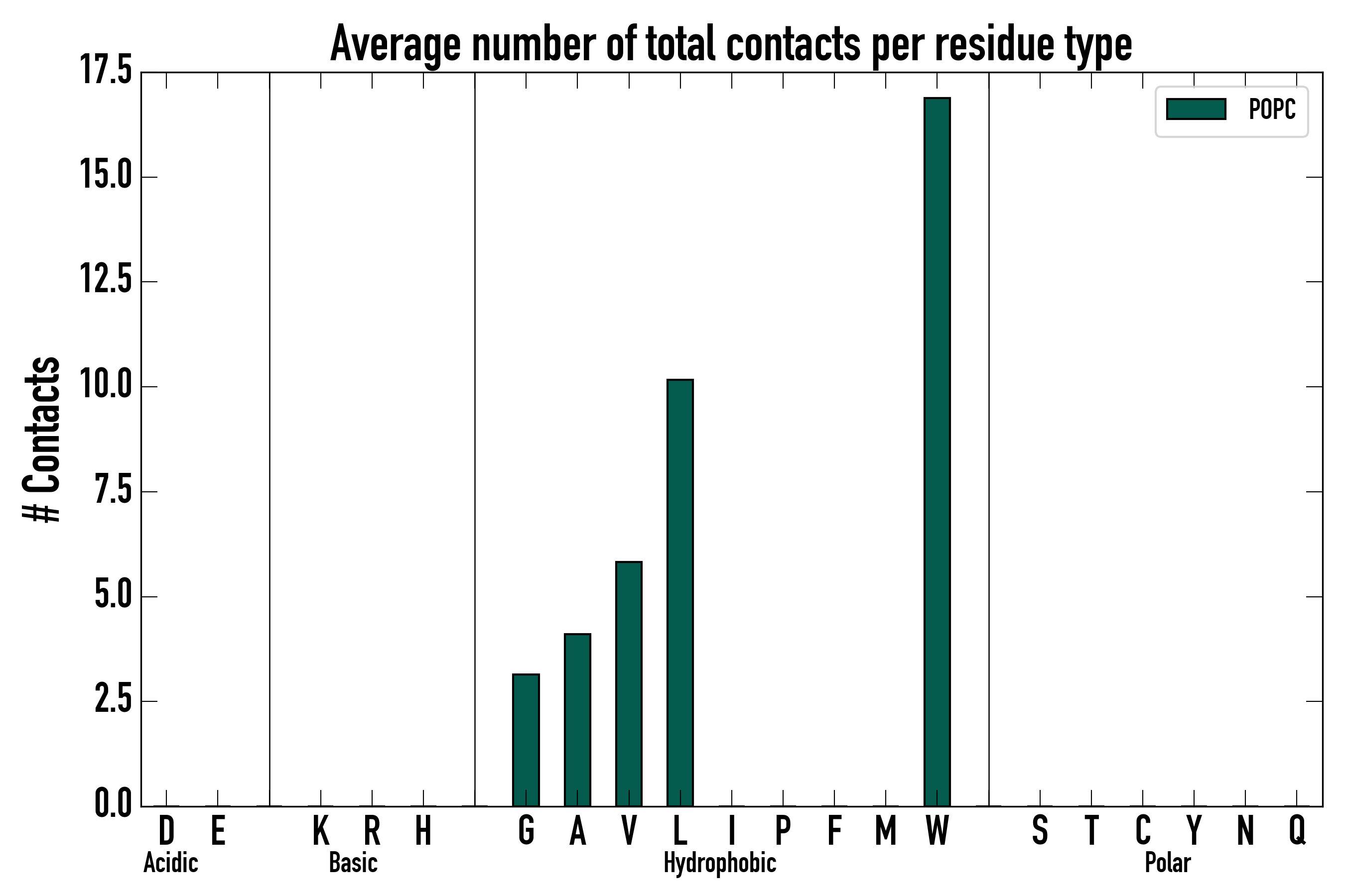 Number of total contacts per residue type: