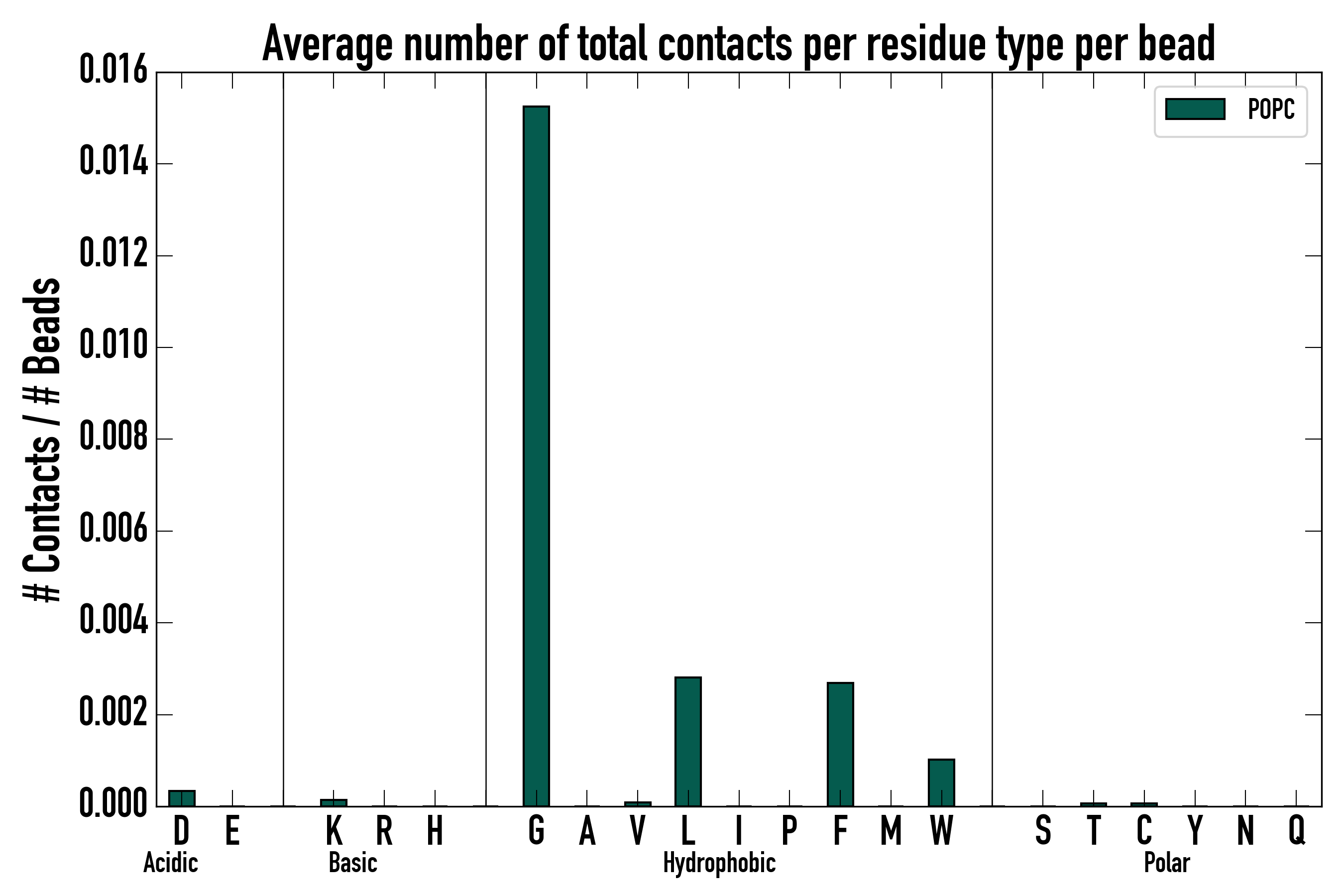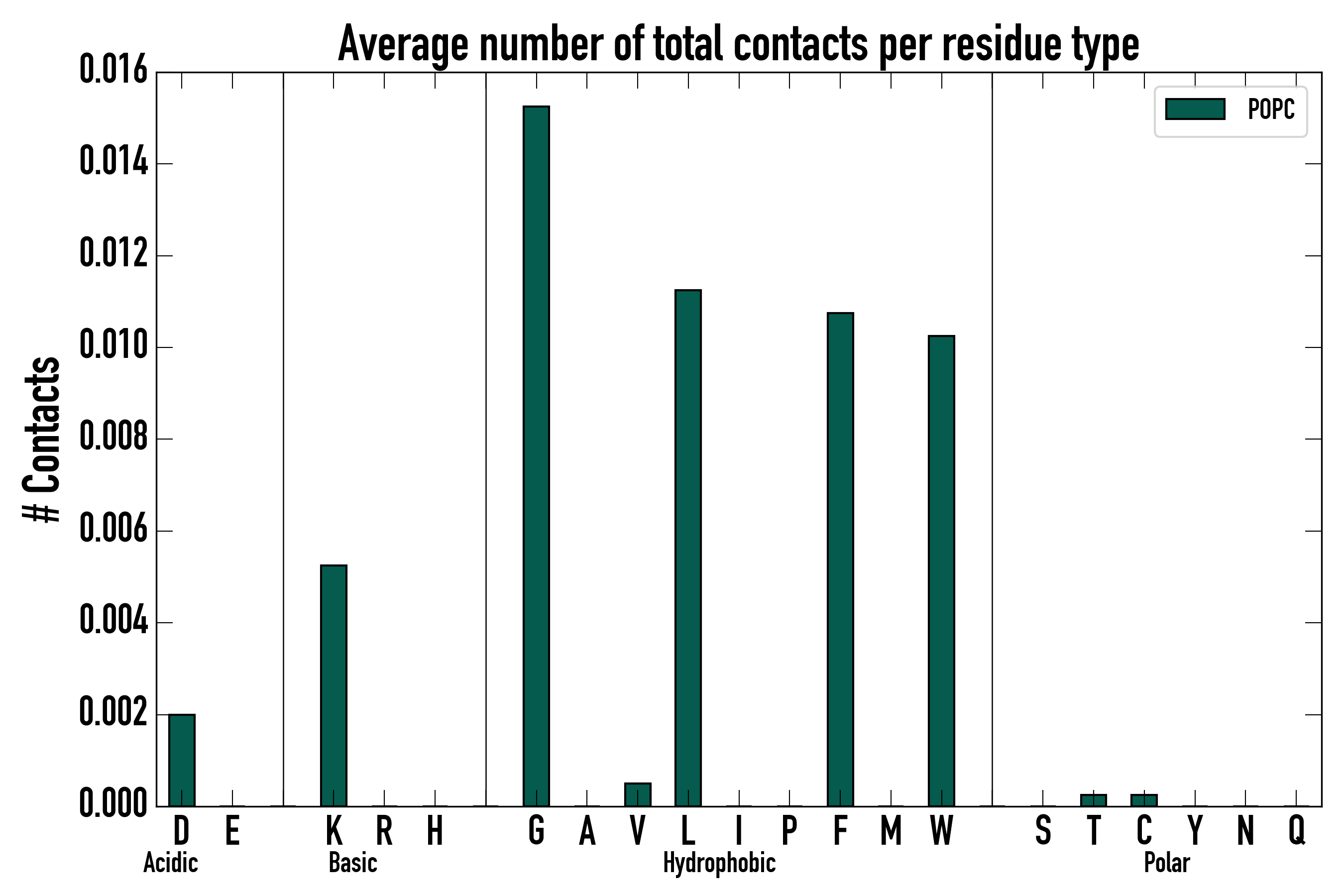 Number of total contacts per residue type:
