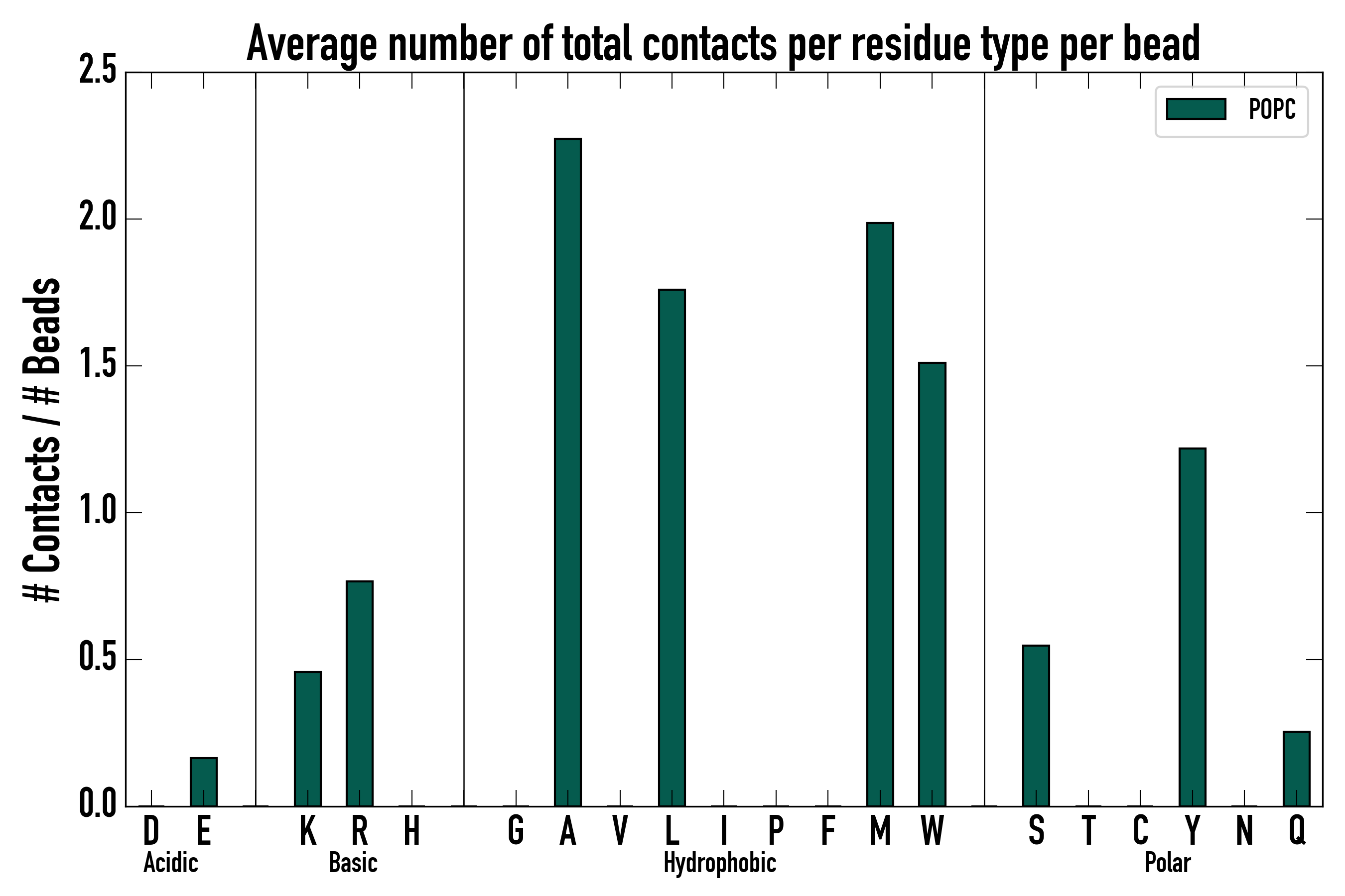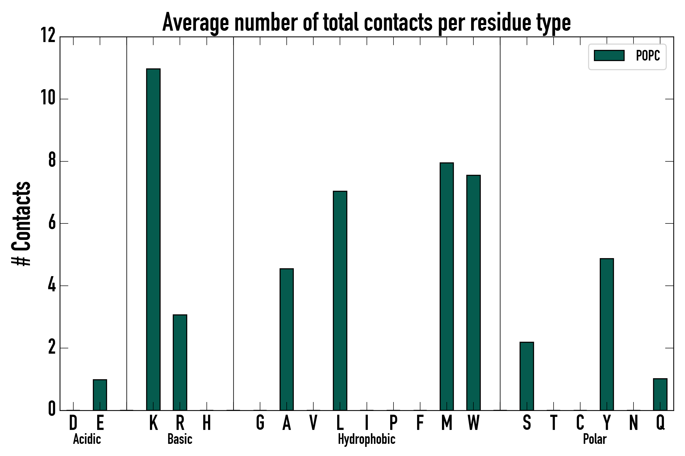 Number of total contacts per residue type: