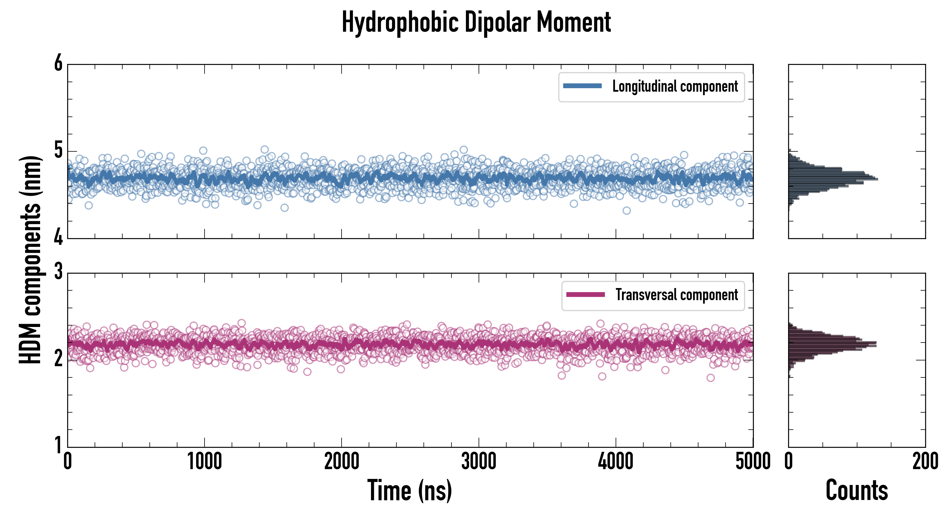 Longitudinal (e nm): 4.65 Transversal (e nm): 0.9 Hydrophobic Dipolar Moment (nm): 5.21