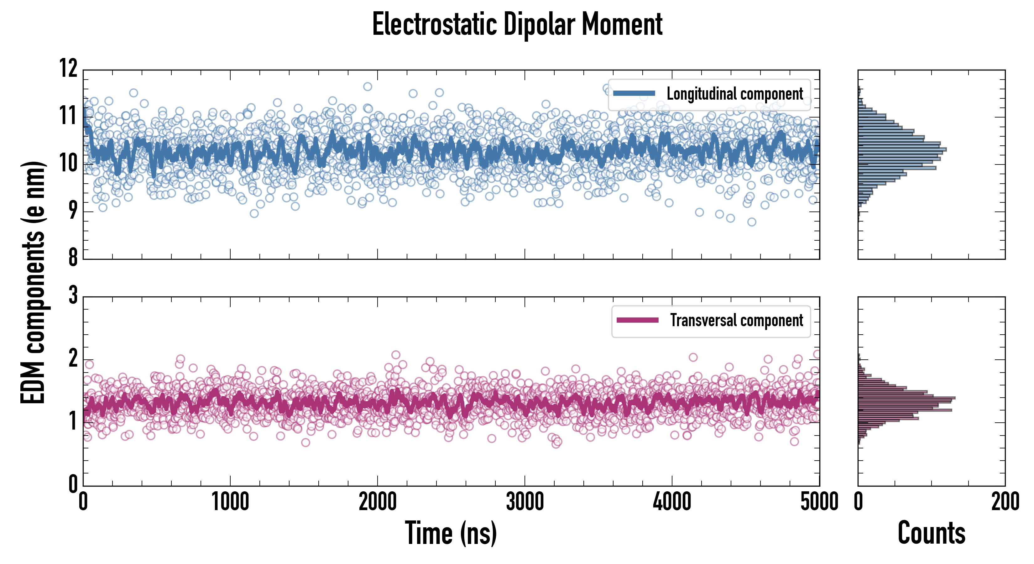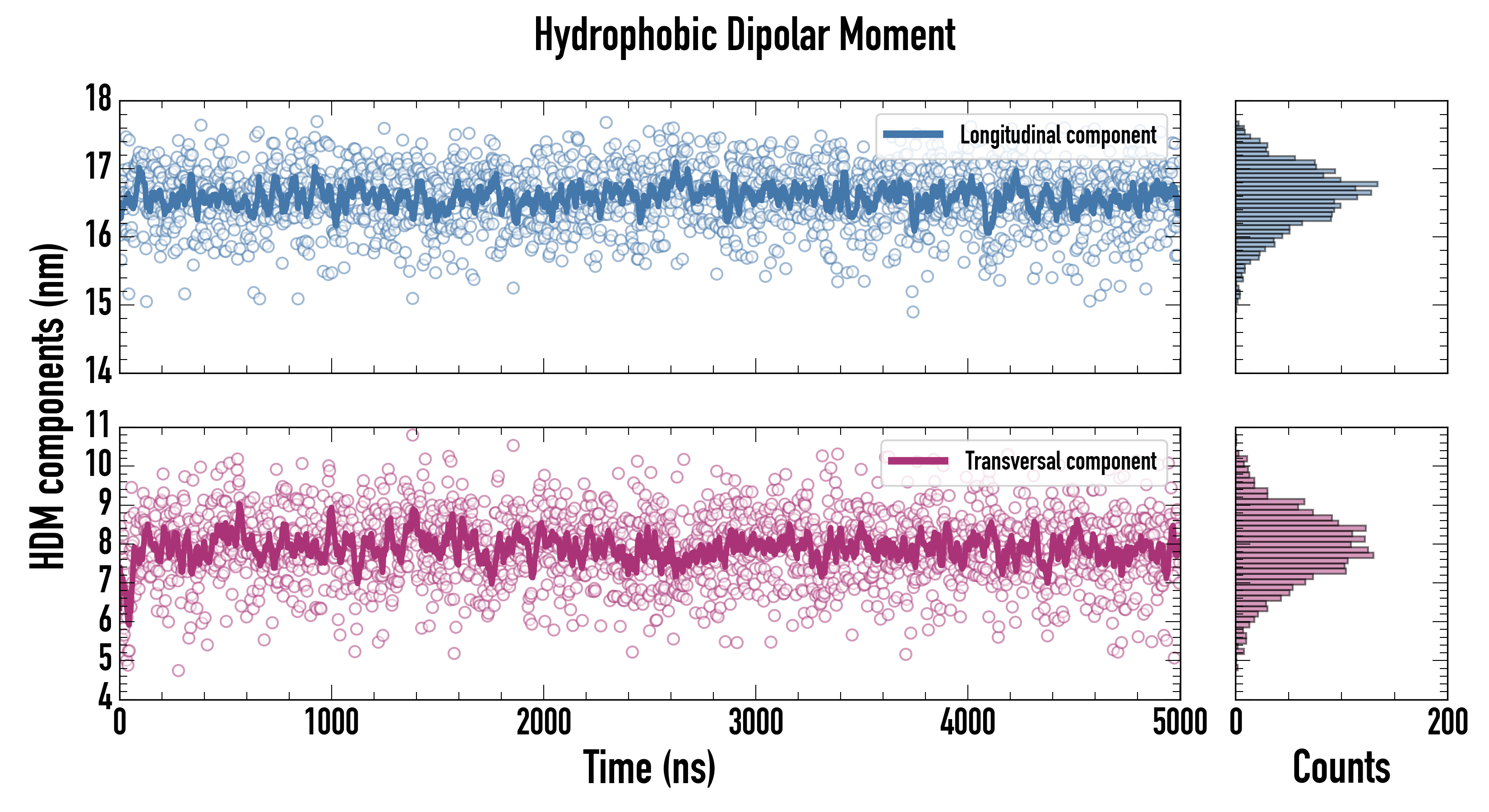 Longitudinal (e nm): 12.3 Transversal (e nm): 1.32 Hydrophobic Dipolar Moment (nm): 18.2