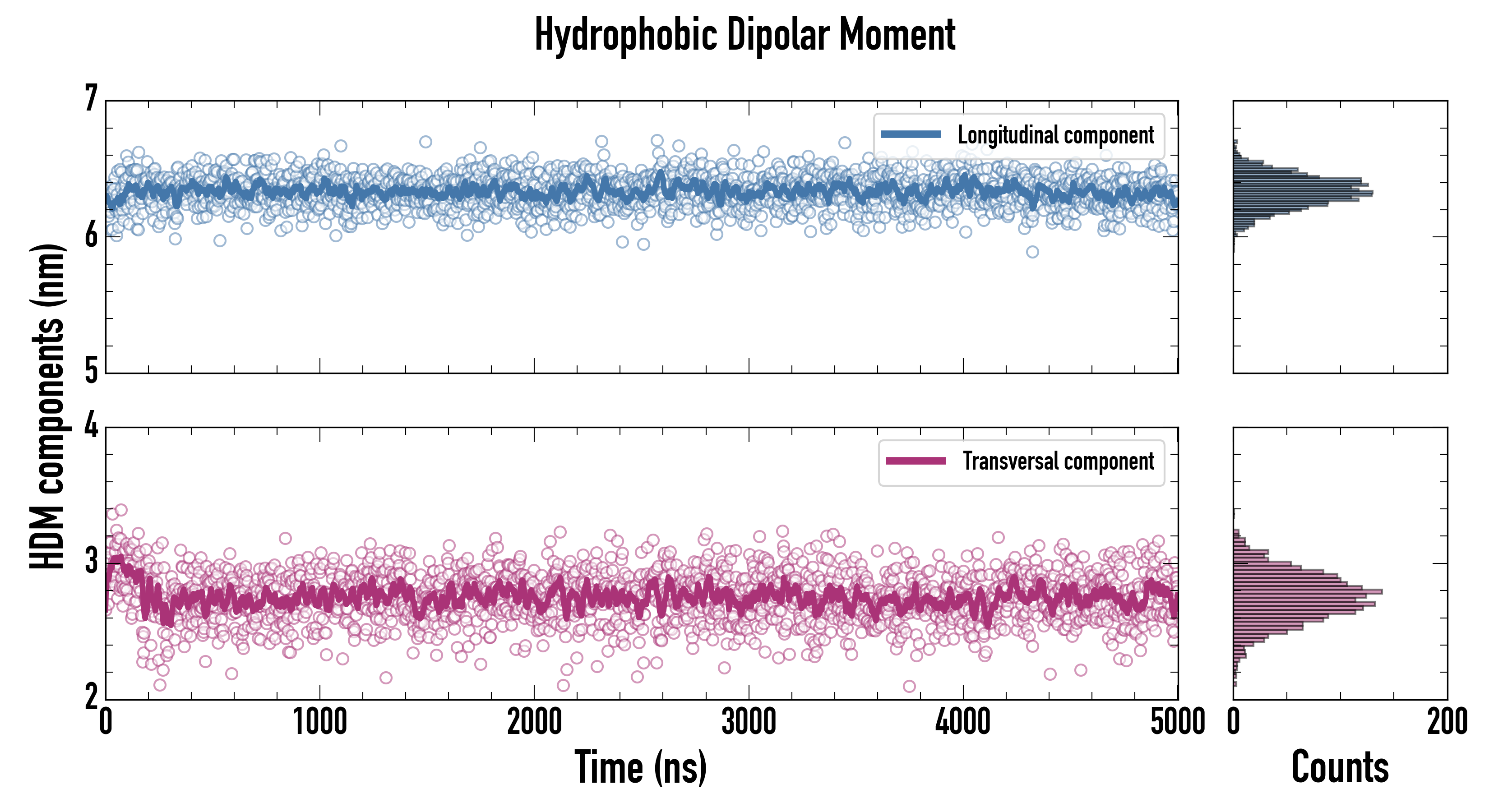 Longitudinal (e nm): 1.87 Transversal (e nm): 1.32 Hydrophobic Dipolar Moment (nm): 7.15