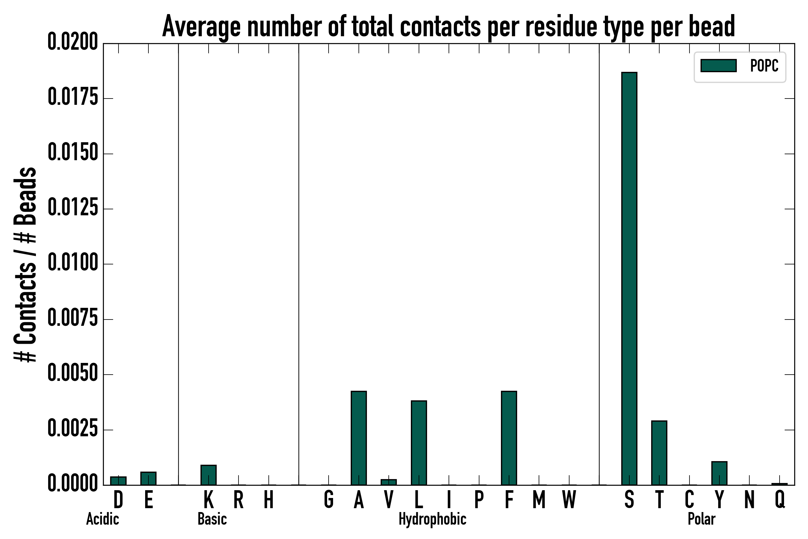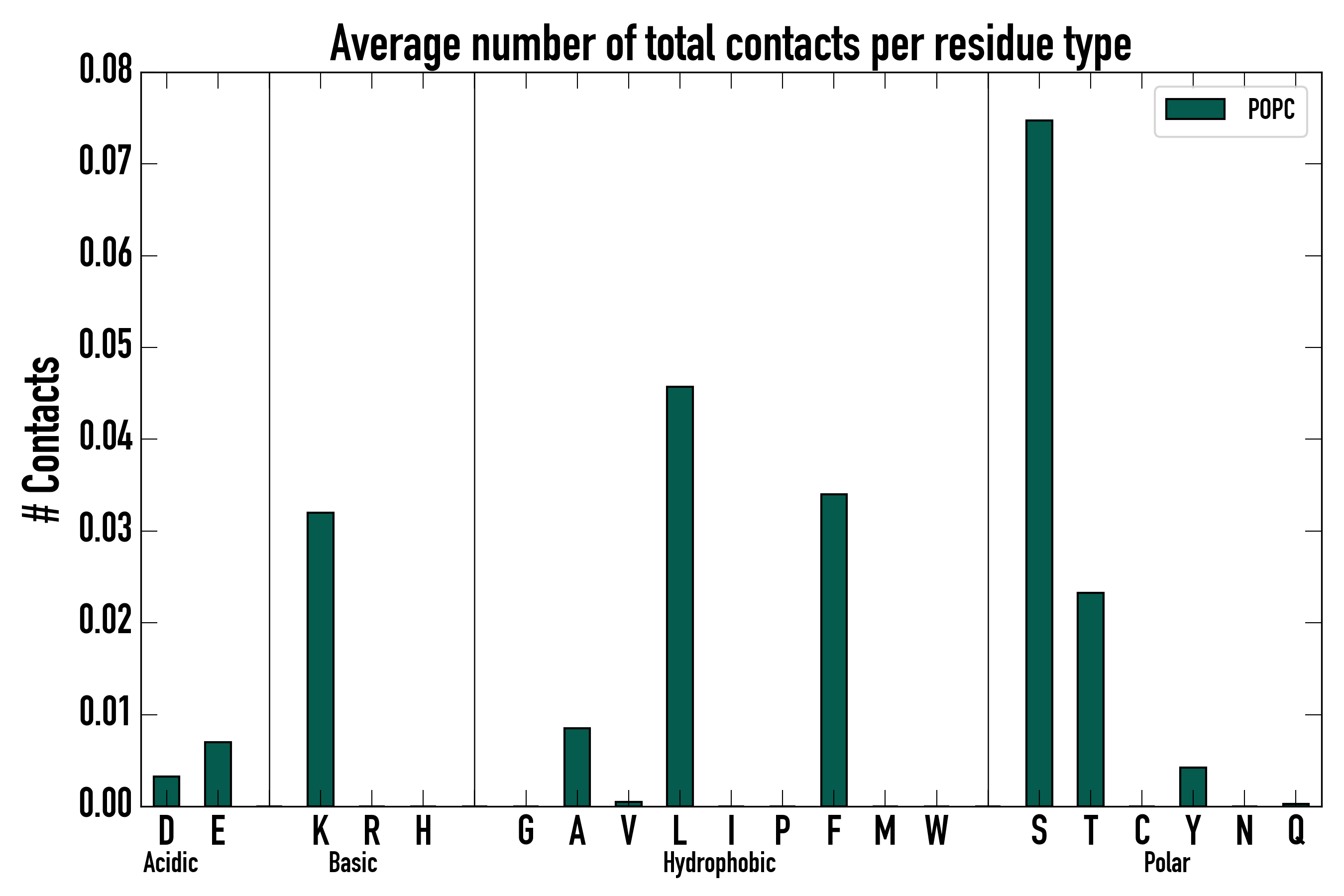 Number of total contacts per residue type: