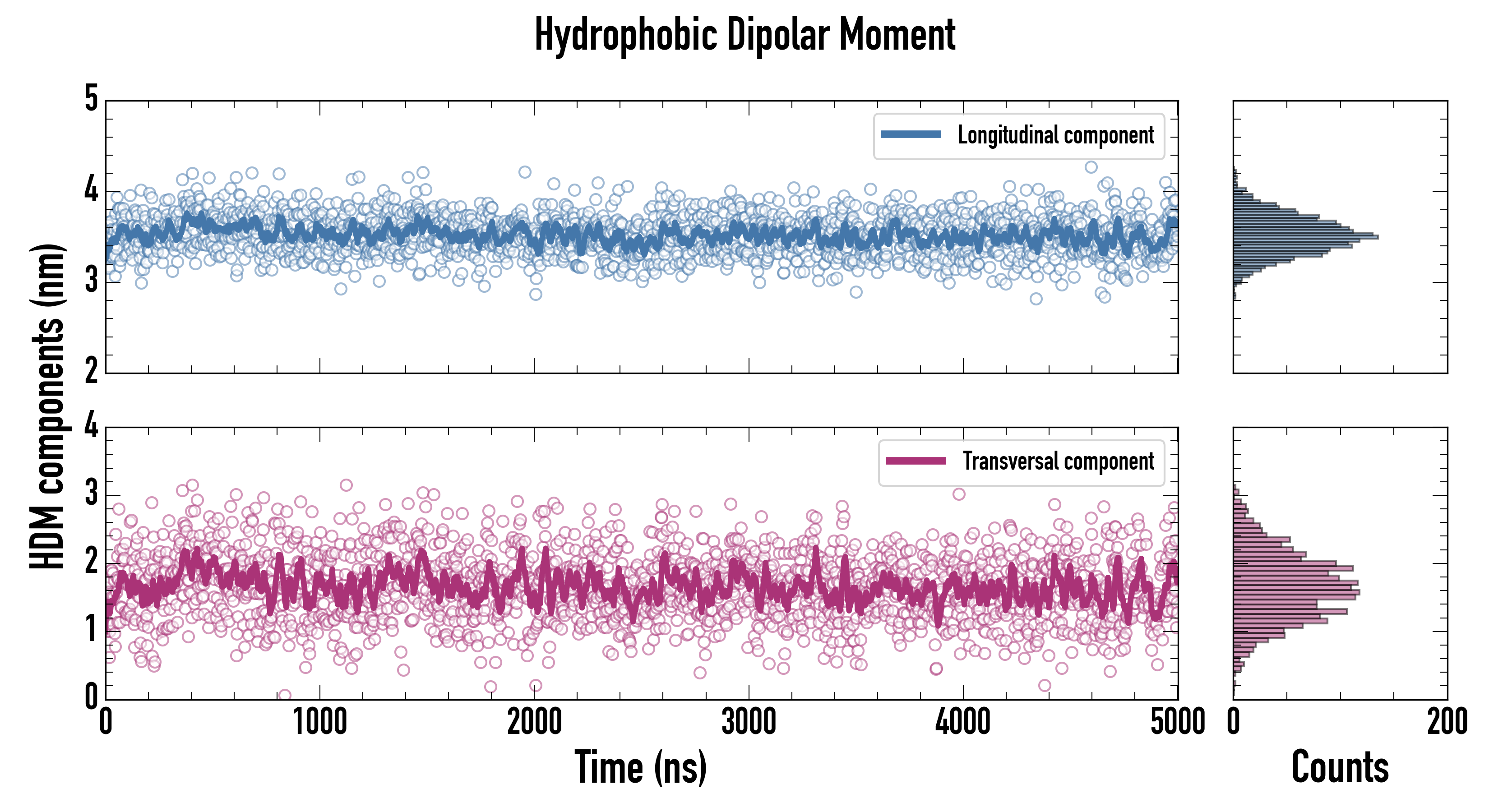 Longitudinal (e nm): 11.09 Transversal (e nm): 2.19 Hydrophobic Dipolar Moment (nm): 3.99