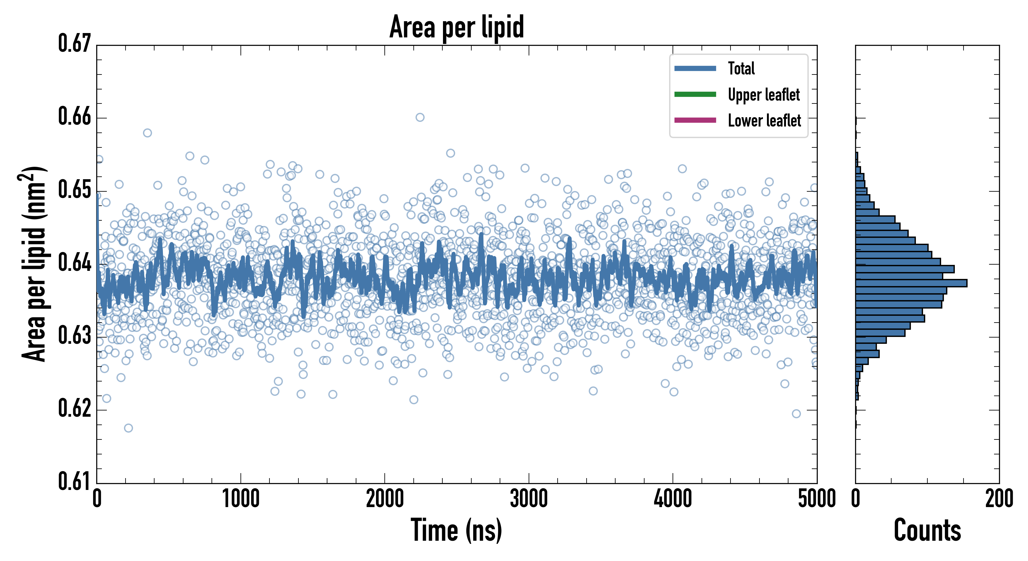Upper leaflet (nm2): 0.637807000 ± 0.000922797