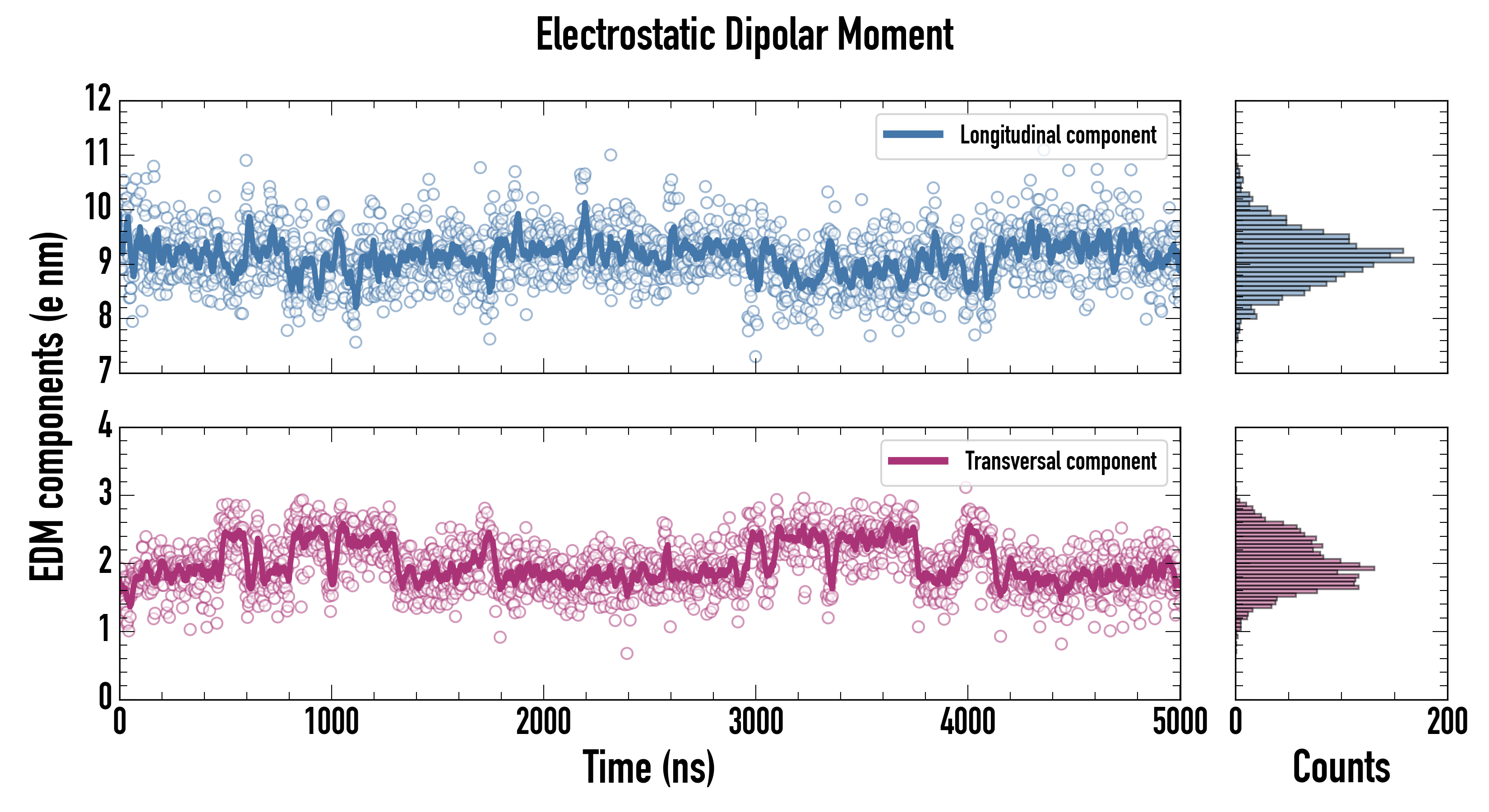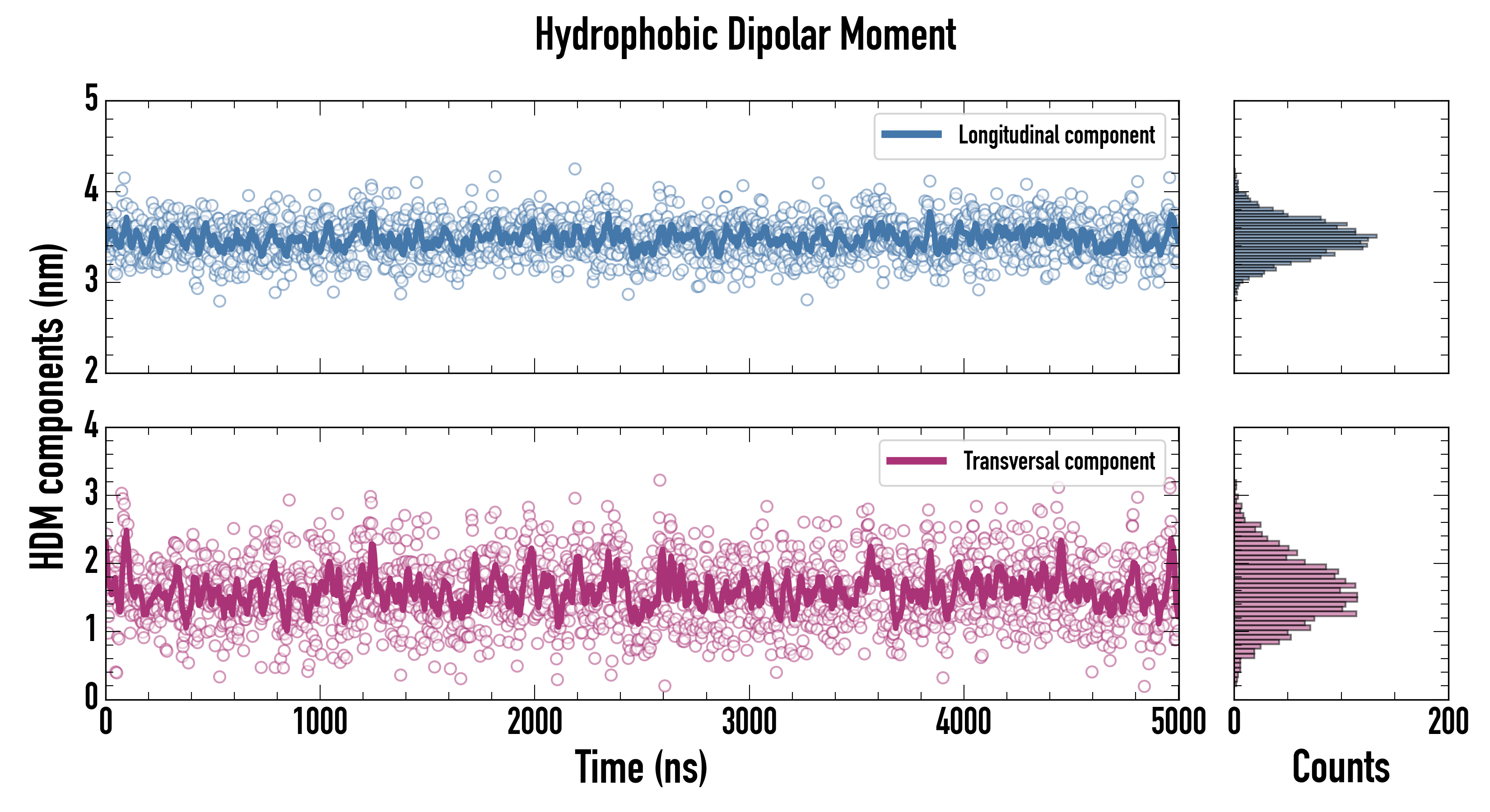 Longitudinal (e nm): 11.09 Transversal (e nm): 2.19 Hydrophobic Dipolar Moment (nm): 3.99