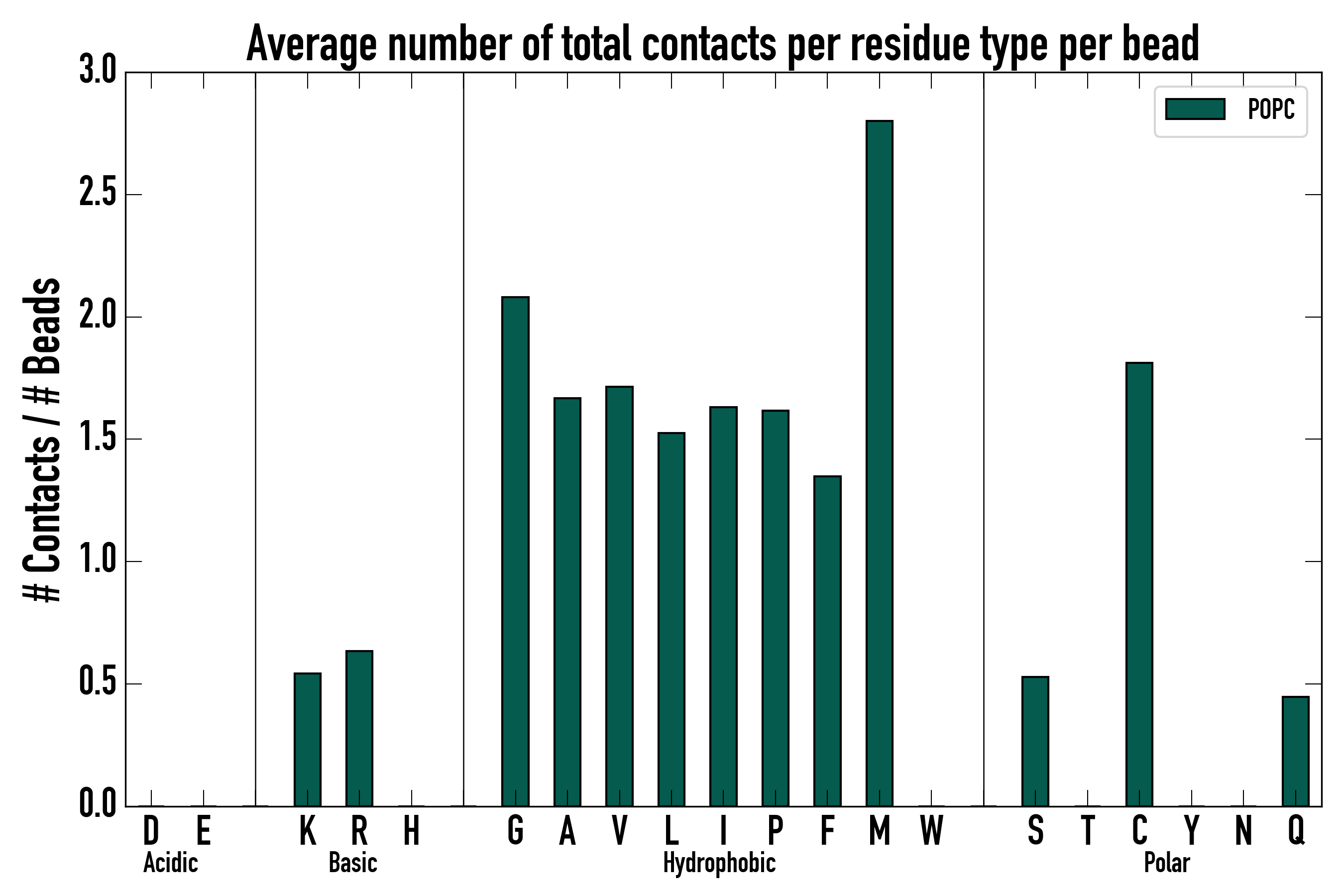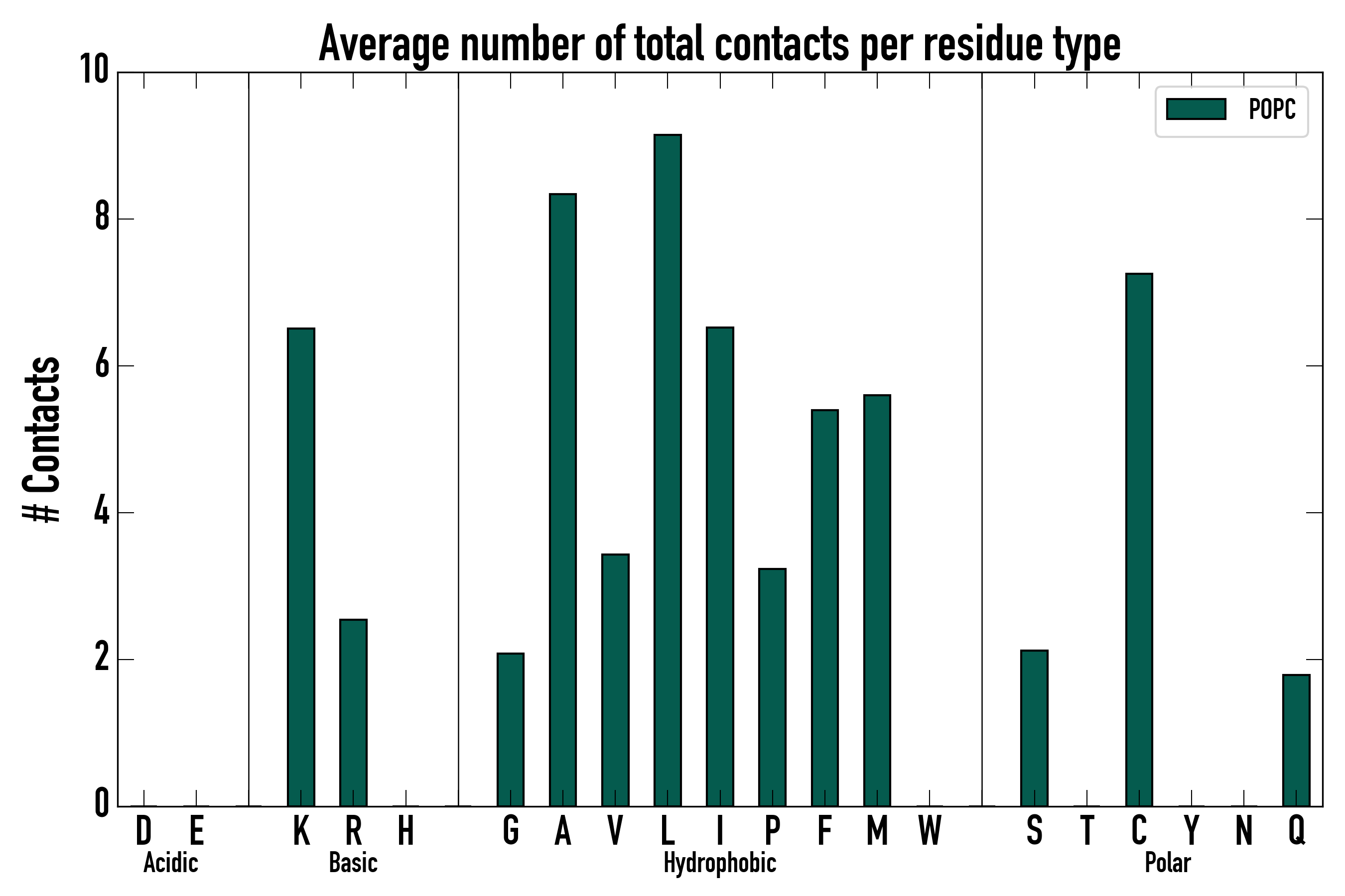 Number of total contacts per residue type: