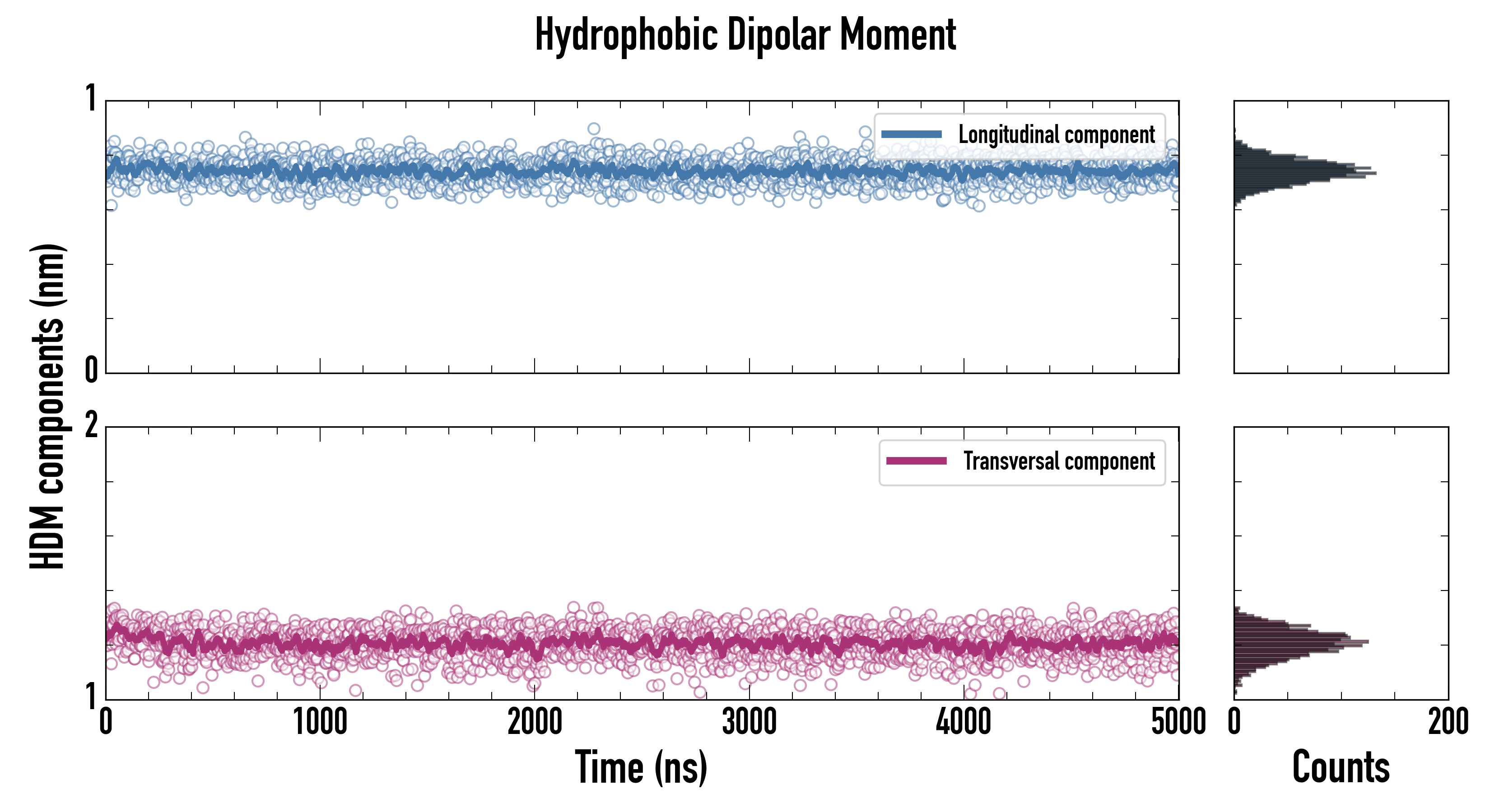 Longitudinal (e nm): 1.55 Transversal (e nm): 0.64 Hydrophobic Dipolar Moment (nm): 1.47