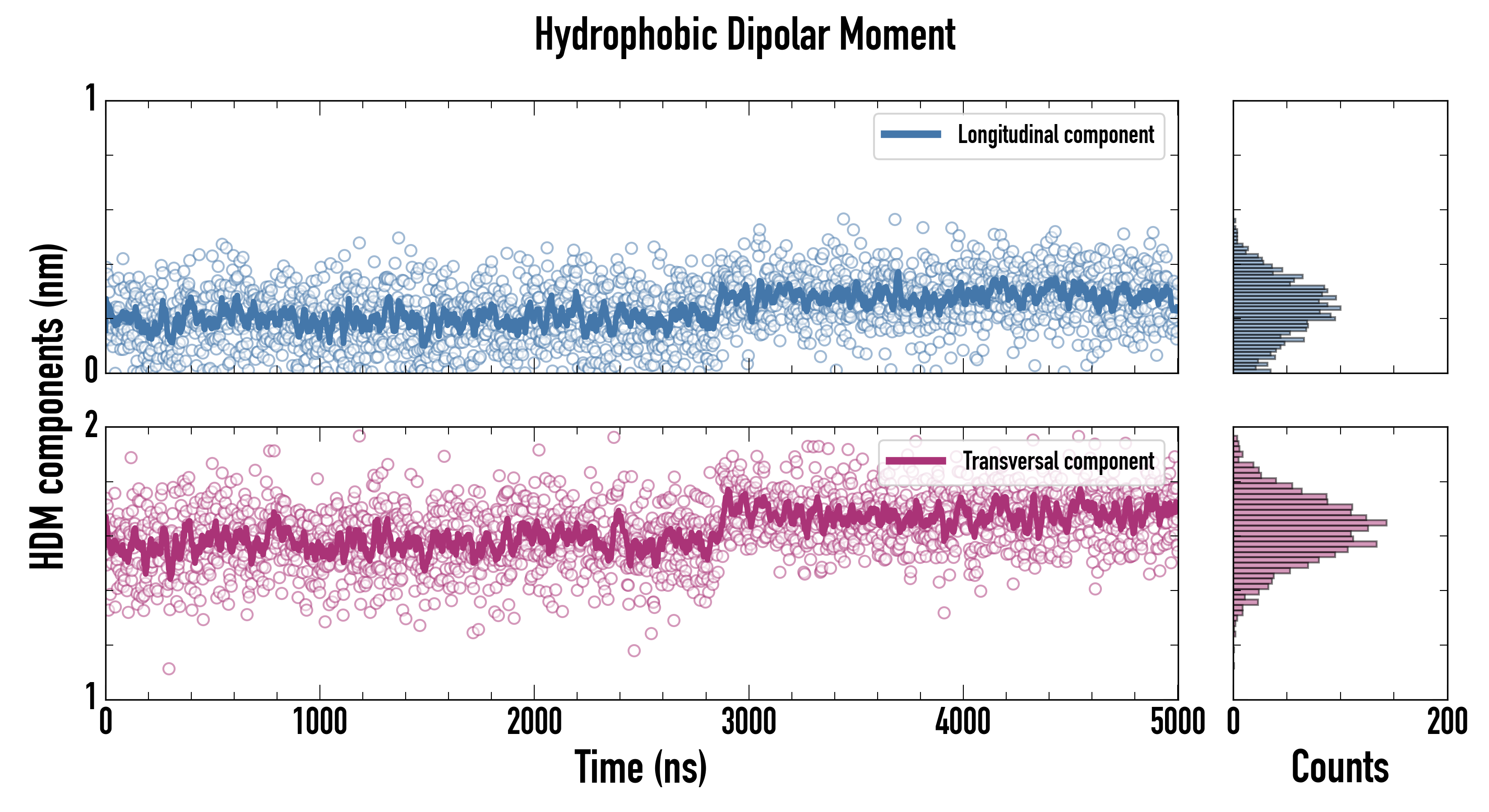 Longitudinal (e nm): 11.69 Transversal (e nm): 1.99 Hydrophobic Dipolar Moment (nm): 1.48