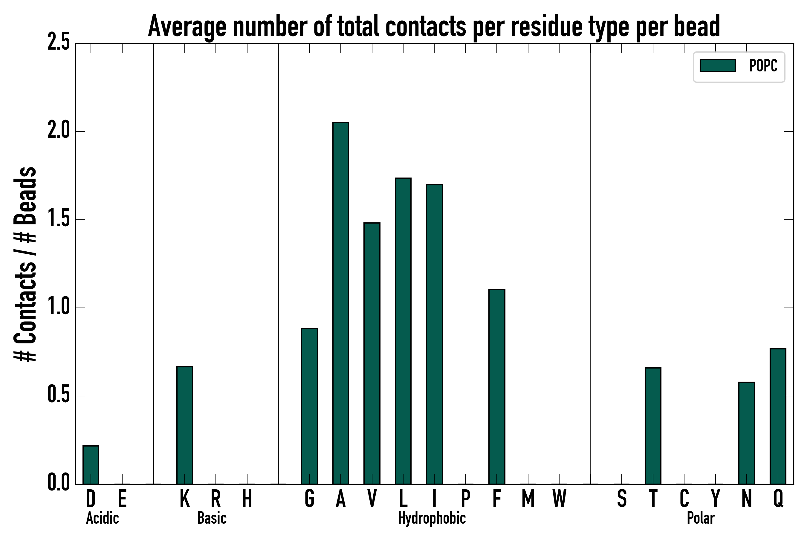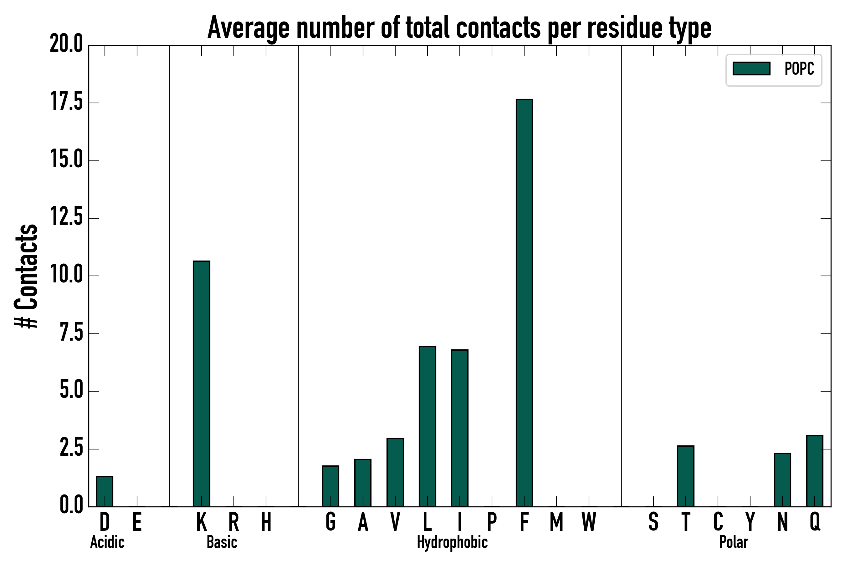 Number of total contacts per residue type: