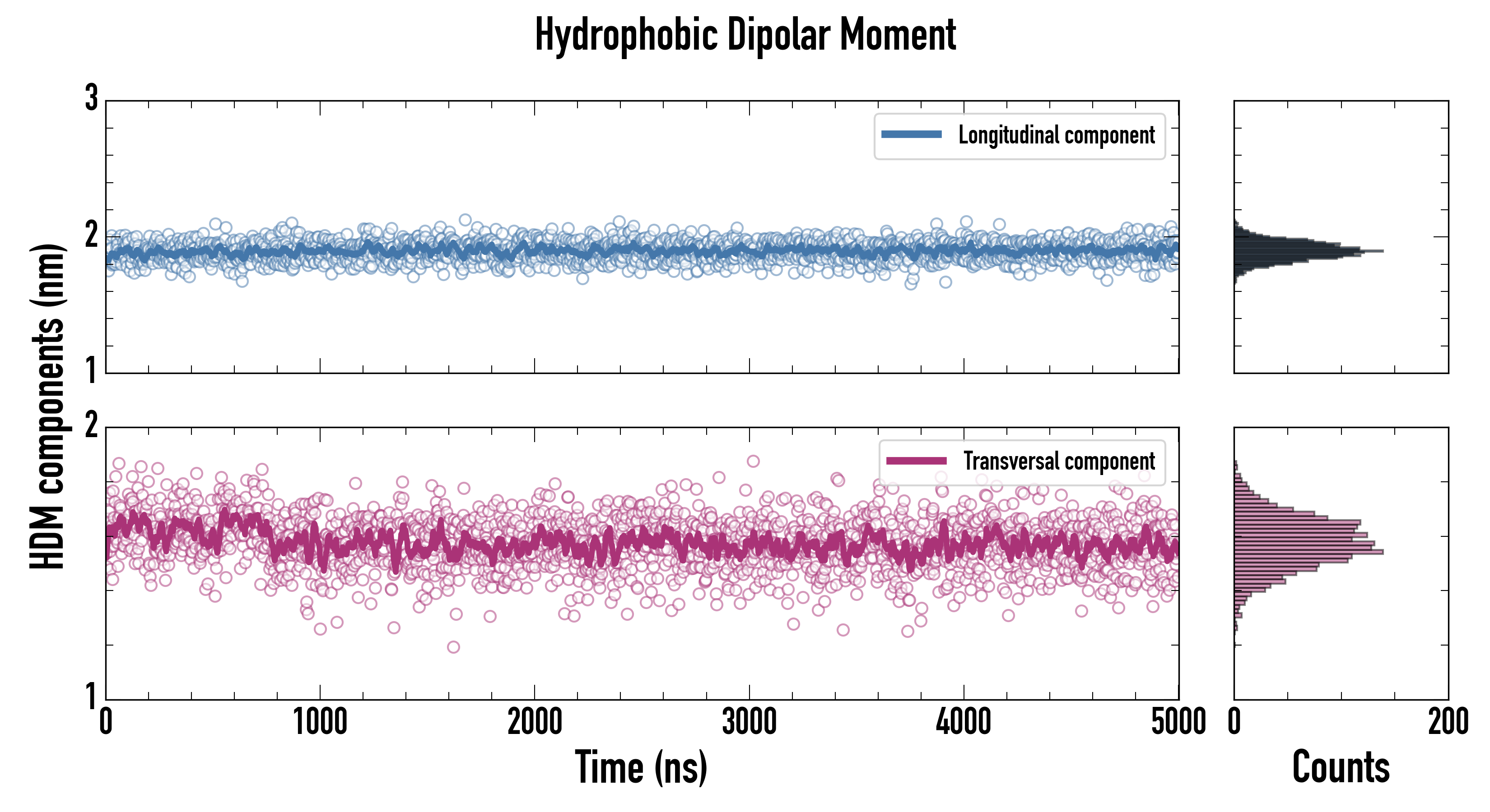 Longitudinal (e nm): 4.29 Transversal (e nm): 0.84 Hydrophobic Dipolar Moment (nm): 2.35